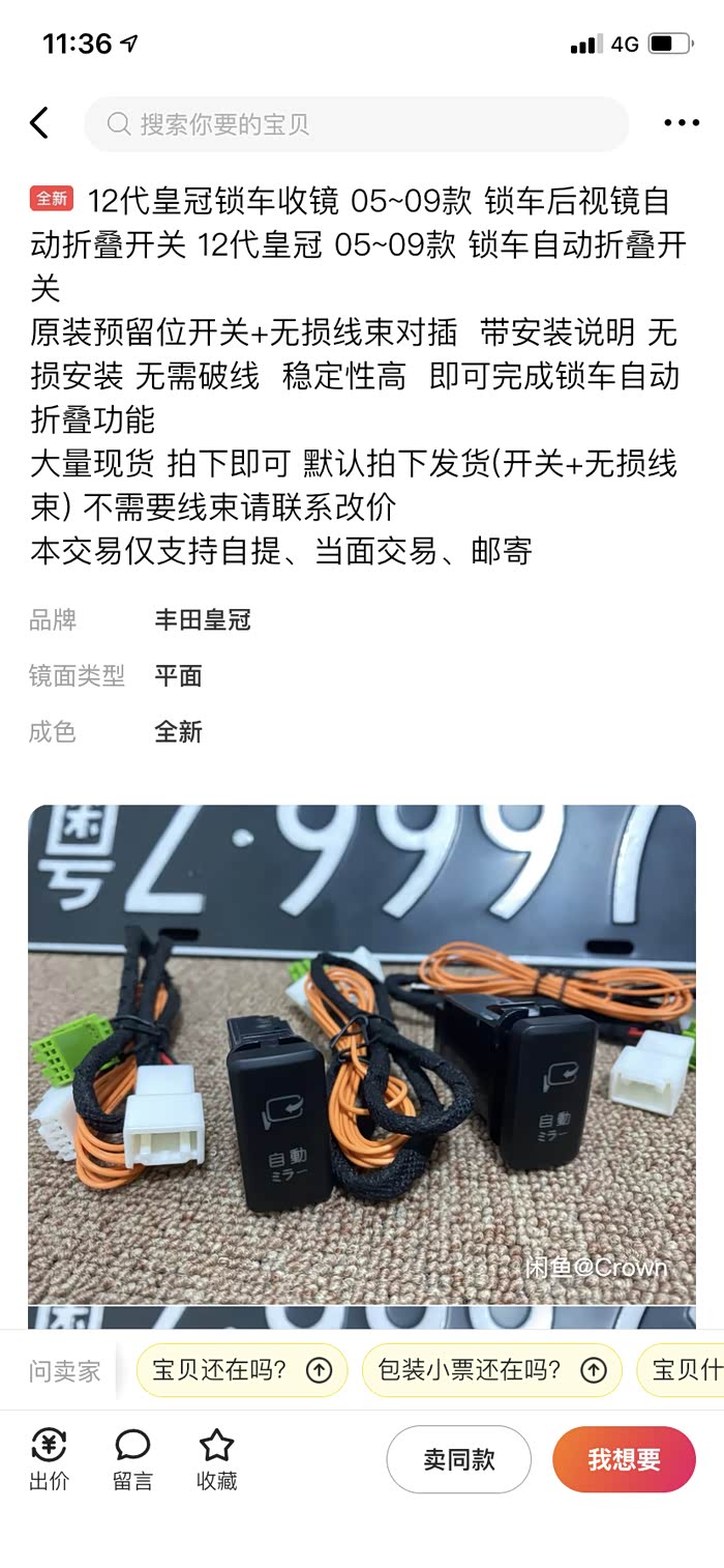 请问12代皇冠怎样装锁车自己折叠后视镜