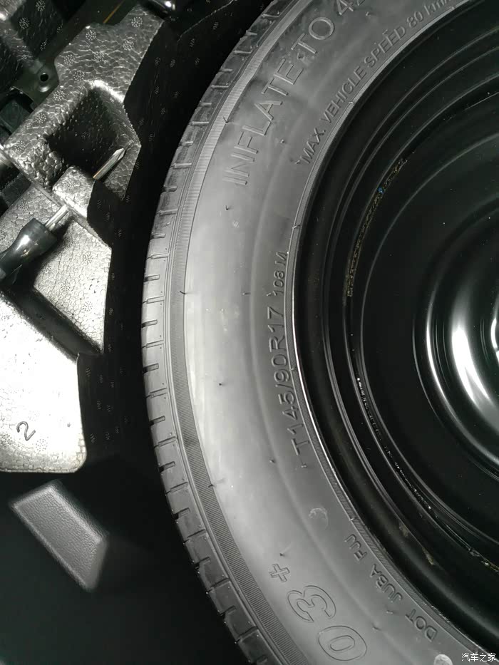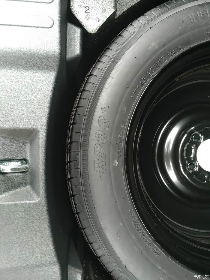 备胎是朝阳轮胎的RP03+,145/90R17窄胎,