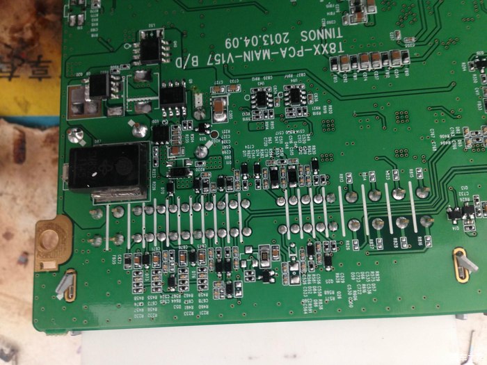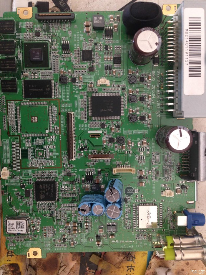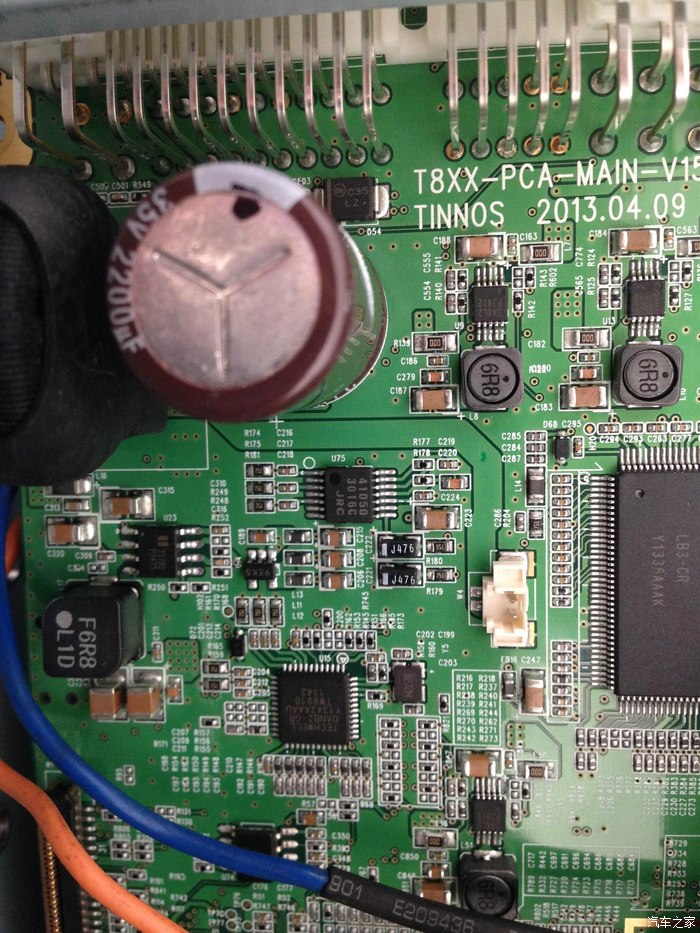 这是已经换完的板子的图片。。铁盖盖得太早了没有拍。换完后的确高音通透。低音比原来下潜很多。但是低音对于我来说还不够。。我的车是科鲁兹。。这个朗动是姐姐的。。没办法就是爱折腾。。呵呵。毕竟没有多少钱。本来想连运放一起换的呢。。可是不知道那个是运放模块。所以两个2107运放就浪费了。。改完以后朗动不需要和别的车一样拆掉8个接地电容或者16个接地电容。。朗动不需要因为我查看了。功放输出脚位。连接接地的原件的焊盘都有。。但是没有原件。也就是说朗动没有接地电容。改完后没有自激或者发热现象。。改完后上车试了试5分钟音量15芯片稍微有点问问的。绝对一点都没有烫的感觉。