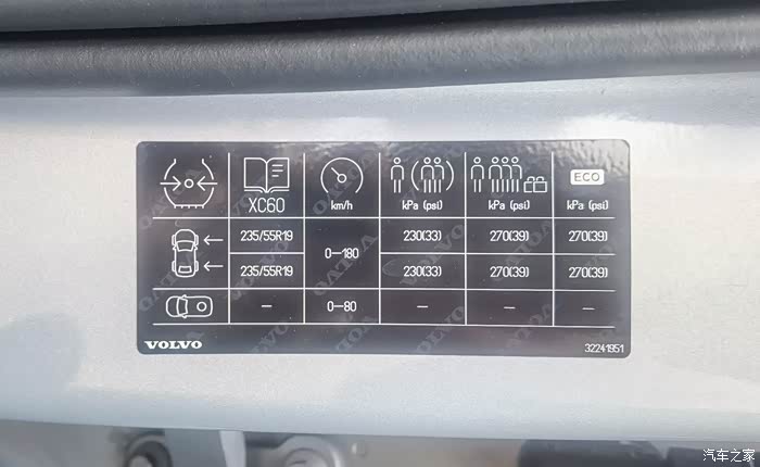 轮胎胎压的变化会直接影响到油耗的变化,当胎压不足的时候,轮胎与地面的接触面积会加大,摩擦力也随之增大,因而油耗也会响应的增加,根据XC60主驾驶位的铭牌参考,我们XC60的经济省油胎压是2.7Bar,当然随之夏季的到来,胎压过高,也是有爆胎的风险,所以,在开车前,我们还是要保持好良好习惯,经常检查下轮胎情况再出发。