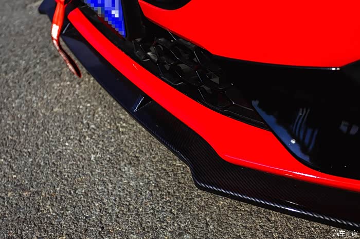 亮黑烤漆蜂窝中网下中网和碳纤维前铲有效提升了性能车视觉属性