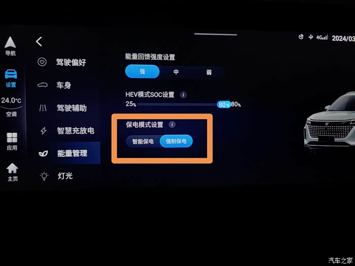 2,长途行驶(行程超过100km,且路况良好,非山区路段)建议充满电后,出发前,将soc设置为智能保电60%左右。提高驾乘体验,且油耗会更好。计算好剩余路程,临到目的地且方便充电的情况下,实时切换EV,甚至是蓝EV,从而达到极致用电。