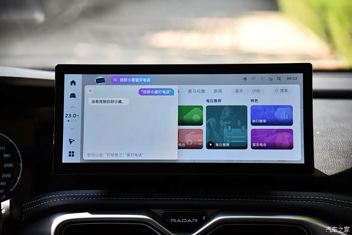雷达RD6中控的设计是非常简洁清爽的,但包括空调出风口设计什么的,还是稍微透露出了一股硬派气质。材质都是极好的,不仅手感好,工艺也很精致,还显得有层次感。中控屏用了银河OS系统,操作起来倒是很流畅,功能也挺多。关键是,听话!雷达RD6的语音助手,是我见过所有车当中,最智能、最懂用户的了。