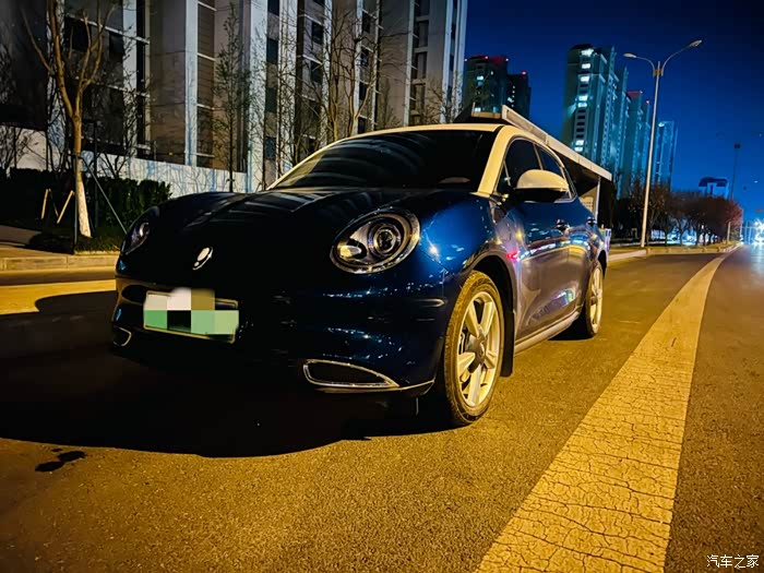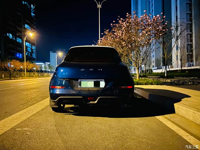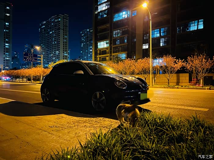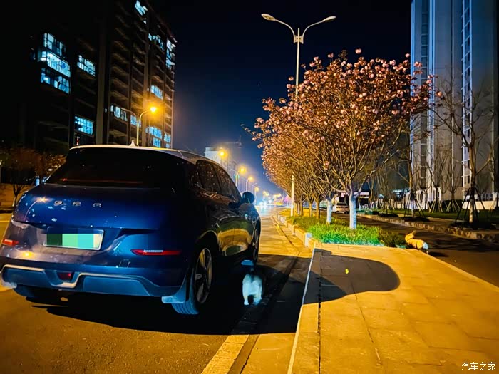 在这个暗夜里,欧拉好猫仿佛也少了平时的风采,仿佛只是简简单单一辆黑车似的,但是昏黄的路灯配上手机的夜景模式,也能看出来欧拉好猫的颜色,就是怎么原谅绿变成蓝色了?