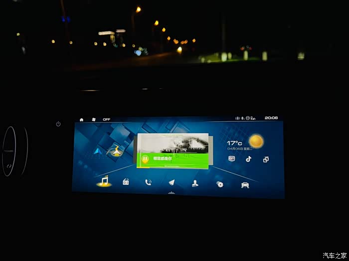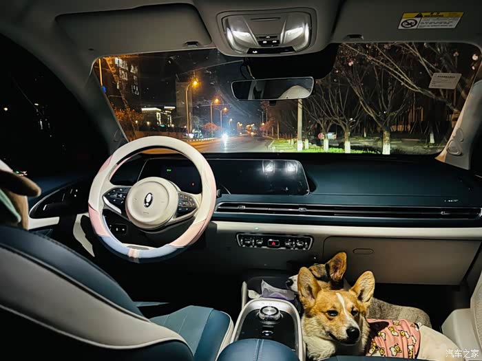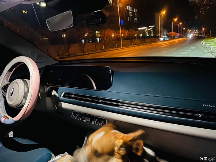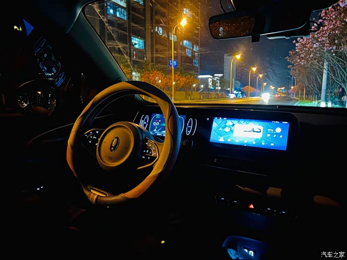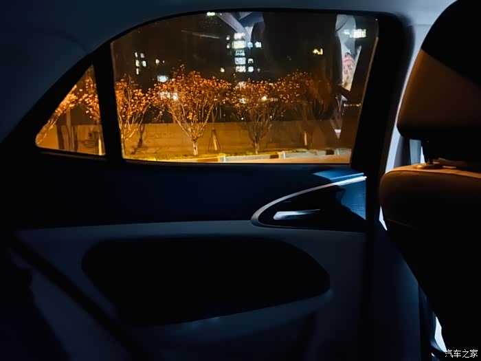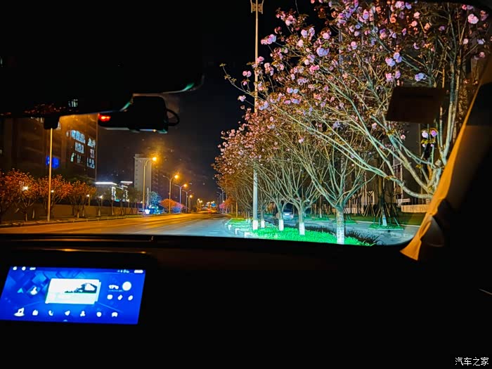 车内也是与外观一体的颜色,流行的大屏,有质感的皮质车门,静静欣赏夜晚的樱花,樱花很美,车内的环境也不错,岁月静好。