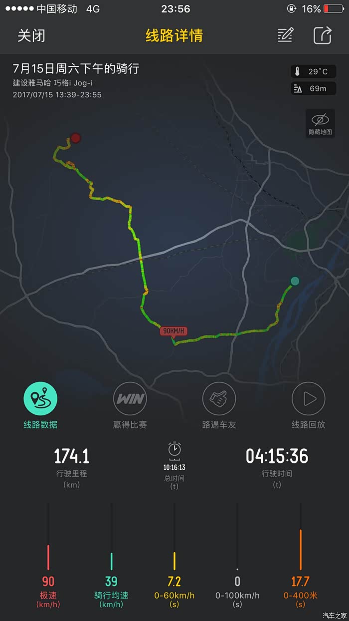 第二天下午骑行174公里,用时7小时。全天累计骑行10小时,300公里