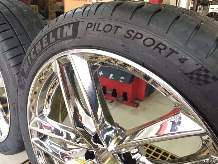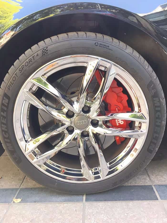 与之搭配的轮胎是米其林pilot sport 4(简称ps4),数据是245 40 R19,这款轮胎是米其林公司去年年中上市的新款,定位入门级高性能运动轮胎,主打操控性、干湿地安全性及高速过弯稳定性,ps3的升级款(A6 45运动标配ps3),在事先查阅了大量资料后,发现相比竞品倍耐力p zero来说,胎噪更小,湿地抓地力更优异,价格更实惠,综合性能最全面的运动轮胎,没有之二。因此在途虎购入四条ps4,加上网站活动,实际1200多入手。超划算。