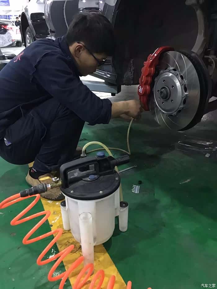 排空原刹车油和空气,这一步非常关键,要多次踩下制动踏板,至少半小时,如果空气没有排干净,会影响刹车踏板力度,导致制动力没有完全释放