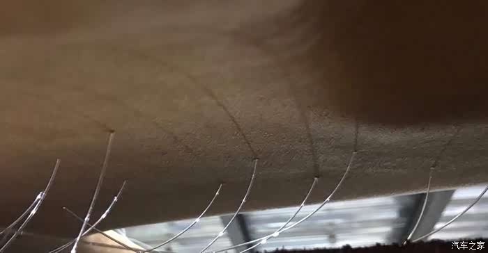 整个顶棚是从A柱一直延伸到C柱后挡风玻璃上方,包上棕色翻毛皮,豪华感立竿见影,胶水味在装车后一个礼拜会有,之后就没气味了。