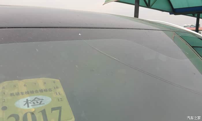 这次说来也巧了。石子击中的地方应该是玻璃最脆弱的地方,在高速上行驶过程中听见很大的声音,开始没注意,等开了一段时间发现玻璃裂了。。。然后就把车开到服务区稍微检查了一下。。倒是没有其他什么大事。