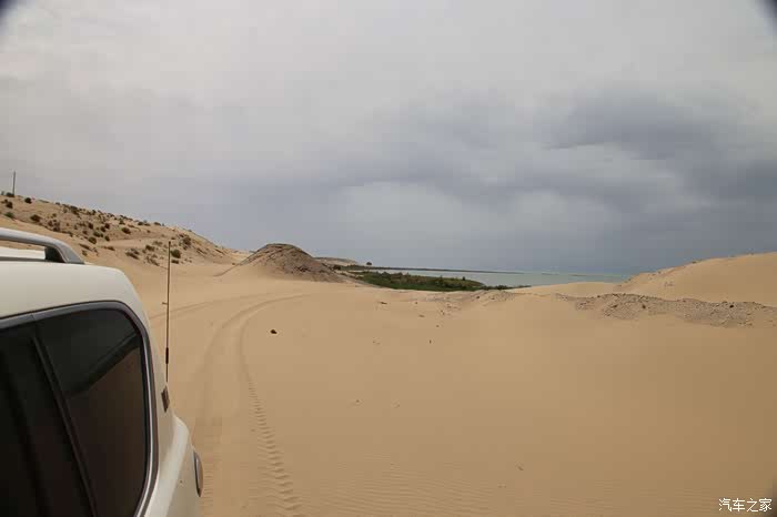 车后面是沙,沙后面是树,树后面是水,就这么纯粹的美。