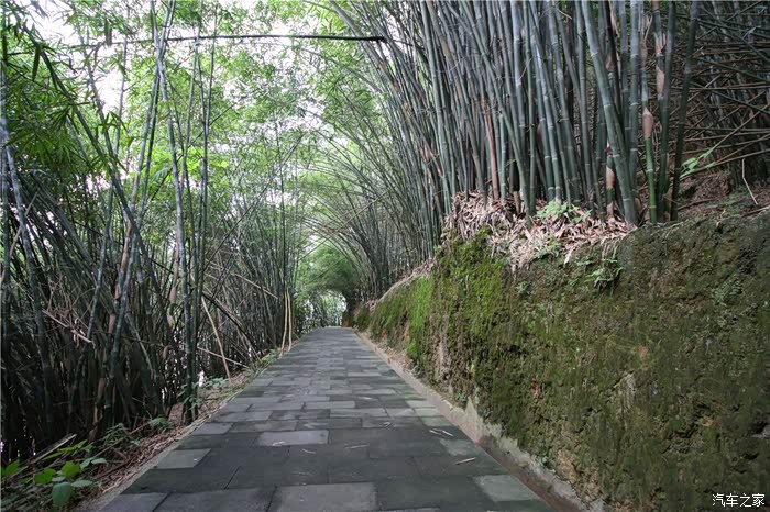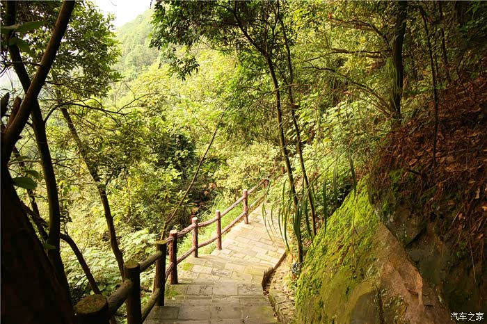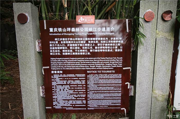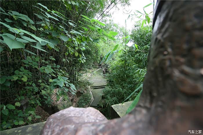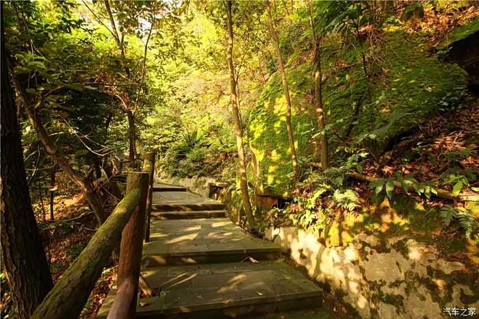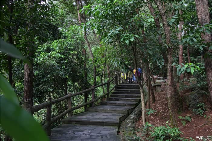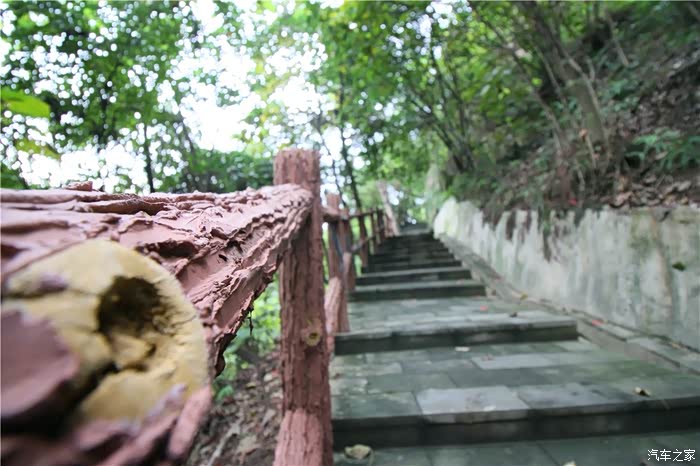 铁山坪很大,光出入口都有4个,从北滨路经海尔路过去,最近的是唐家沱出入口,但是铁山坪的主入口是桂花湾出入口,停车场和山门广场就在这里。我把车就停这里,然后从铁山广场沿松坡小径往山顶的峡江观景平台走去。从松坡小径到翠微路,再往前就是三叠泉了。