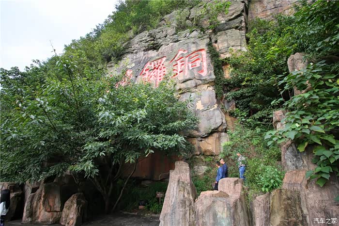 台上置铜锣一面,背后刻有铜锣峡赋供游人鸣锣祈福,涤荡身心,平添登山游谷之乐趣。