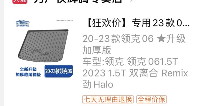 后备箱的垫子,买它我觉得好清洗吧