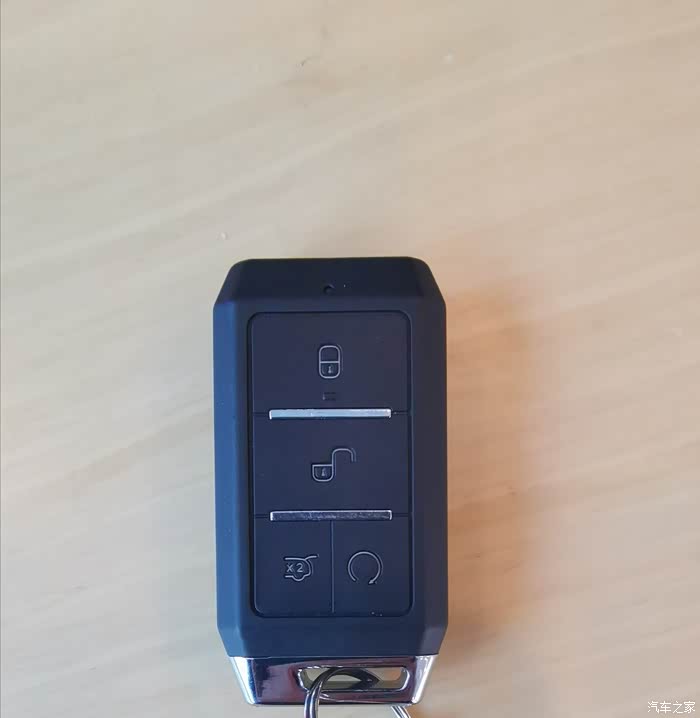 第一个键锁车,第二个键解锁,第三个按两下开后备箱,这几个比较简单了,第四个键一个圈的功能是远程开启和关闭,在遥控器感应距离(20-30米)之间,长按10秒车子会自动启动空调自动打开,车里随时保持冬暖夏凉,再长按10秒就可关闭车子电源,这功能非常实用。