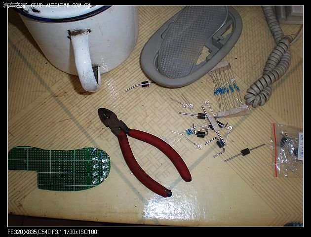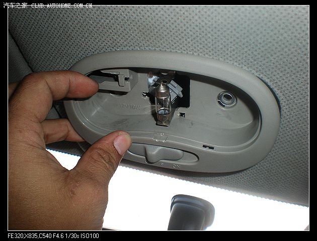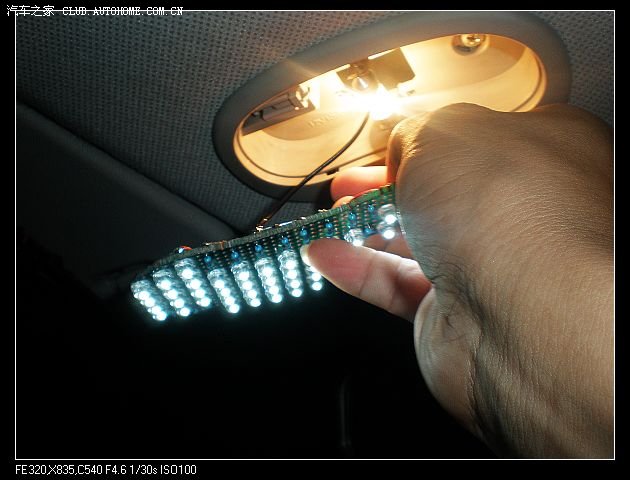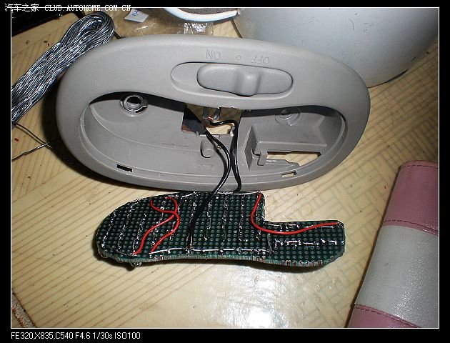 原车顶灯,开一会就烫,于是决定换LED拆下后的顶灯准备的元器件工具板子半成品即将完成即将完成全景成品背后乱七八糟的线全景试验,亮!接线焊上,这里有个小插曲,都焊好后通电居然不亮,急!恢复成原车灯都不亮,抑郁中突然想起可能保险丝烧了,在驾驶侧仪表台侧面,撬开,一看果然保险丝断了,于是把后视镜加热的保险丝(低配车不用后视镜加热的)换上了效果1效果2仪表台侧面保险丝盒保险丝盒盖板全景2使用工具