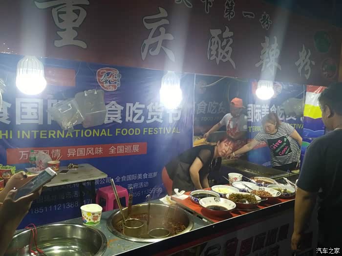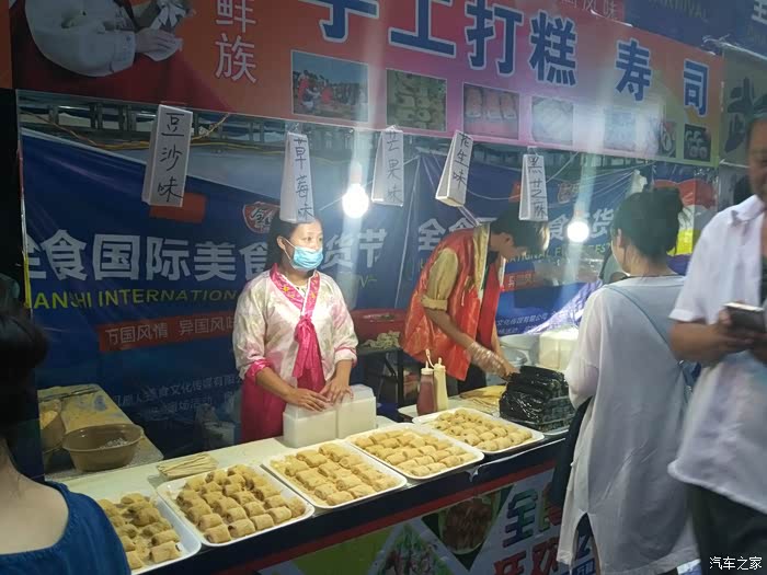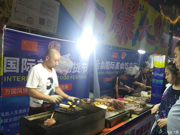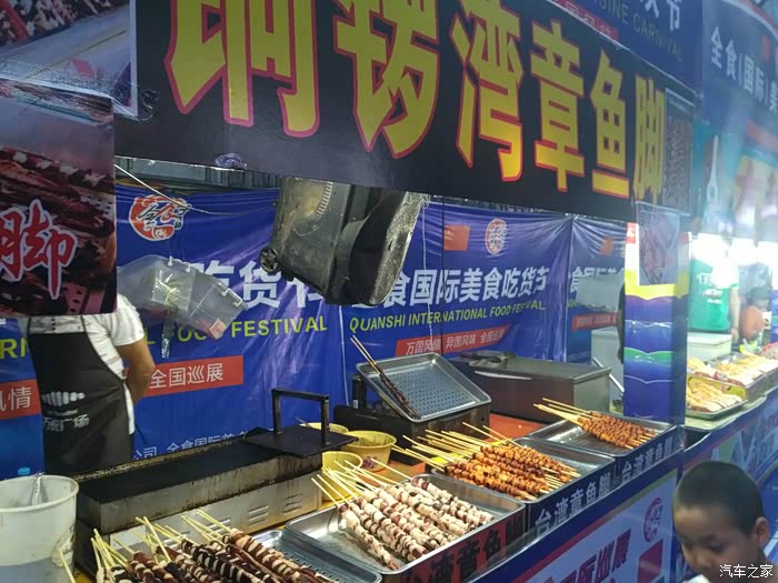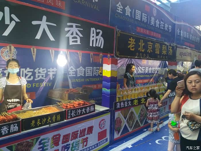这是继车展后的又一个活动美食狂欢节,人头攒动的吃货们品尝着来自全国各地的风味小吃,有长沙臭豆腐、蒙古烤羊肉串、新疆烤羊肉串、台湾烤乳鸽、十八街大麻花、榴莲酥、脆皮香蕉、重庆酸辣粉、老北京麻酱爆肚、章鱼小丸子、巴西烤肉、狗不理包子、台湾马桶冰淇淋、铜锣湾章鱼脚、武汉热干面、朝鲜族手工打糕、炒年糕、台湾花枝烧,还有印度人做的飞饼等等,不出家门就能品尝到民族风味、异国他乡风味小吃,令吃货们大饱口福。
