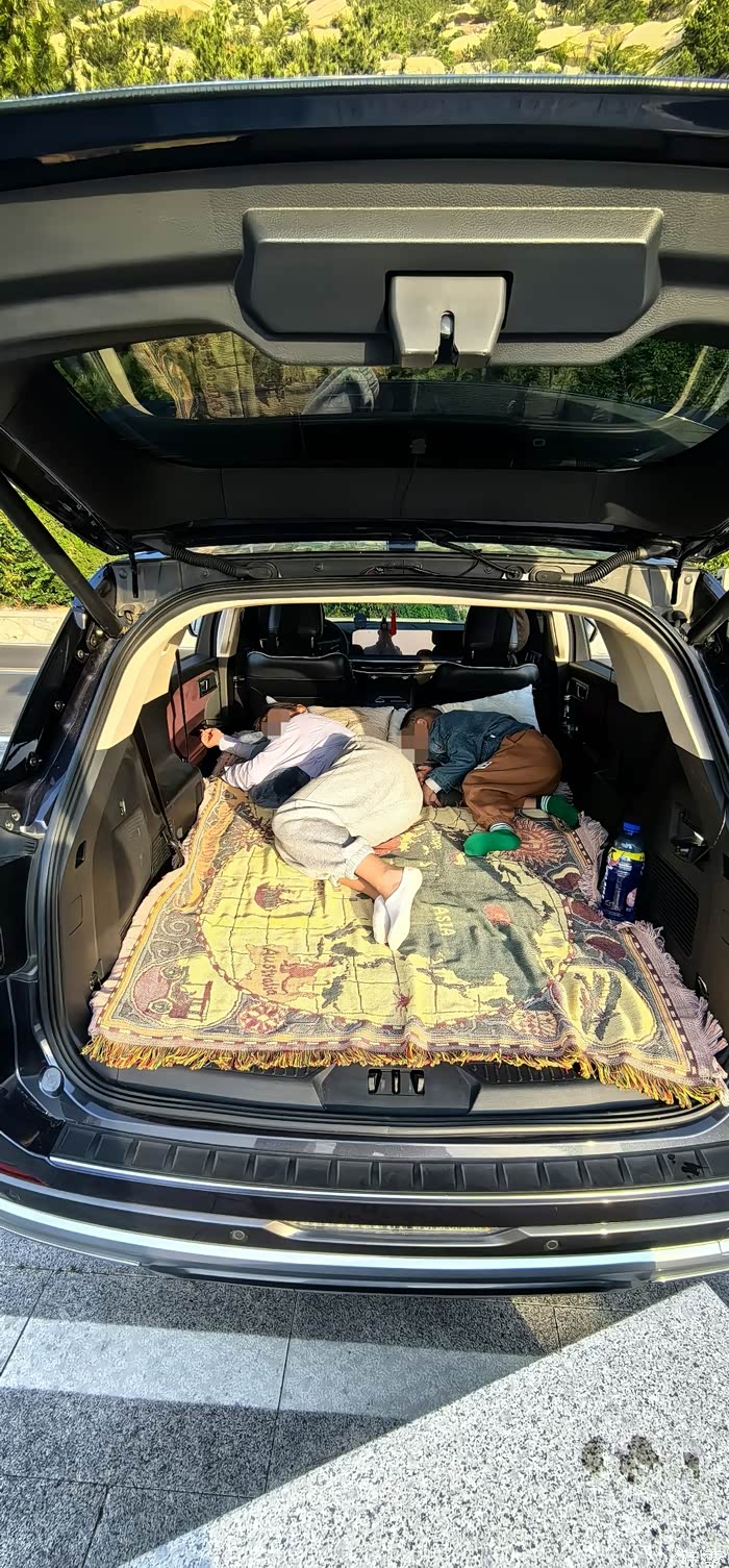 一是介绍一下旅游使用。在长途旅游的漫漫征途中,福特探险者的后排就是一个温馨舒适的移动大床房。想睡觉时候,我会把第三排座椅放倒,平整开阔的空间立刻展现在眼前。在这里,可以完全伸直双腿,以最放松的姿态躺下睡觉,就像躺在家里的大床上一样惬意。无论是在风景秀丽的海滨公路旁小憩,还是在长途跋涉后的高速服务区里深度休息,这个功能非常实用,让旅途的劳累一扫而光。