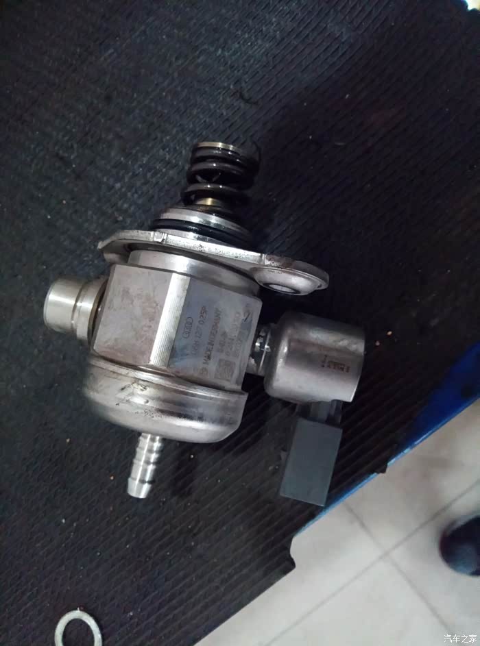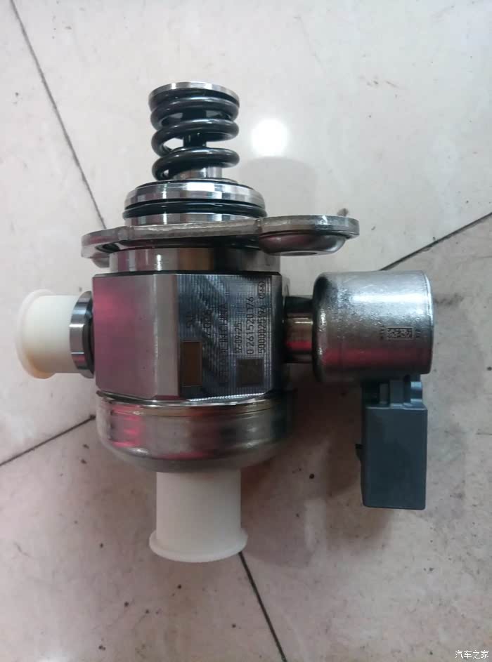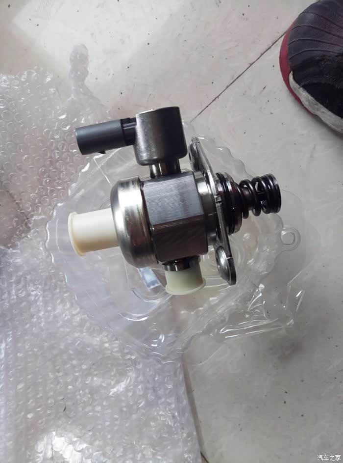 这个是新的高压泵。这里科普一下。大众EA888发动机1.8T和2.0T的高压泵是不一样的,除了结构形状不一样之外,生产厂家也不一样。1.8T的是联合电子做的,2.0T的是日立做的。呵呵
