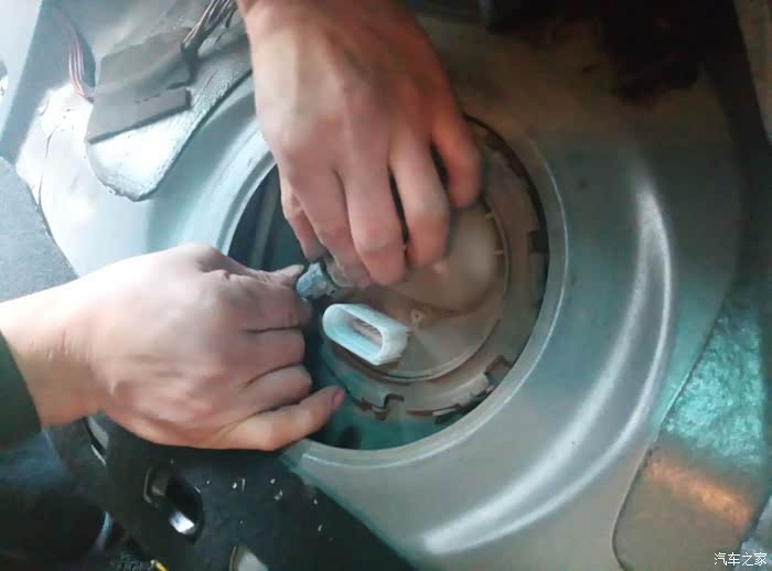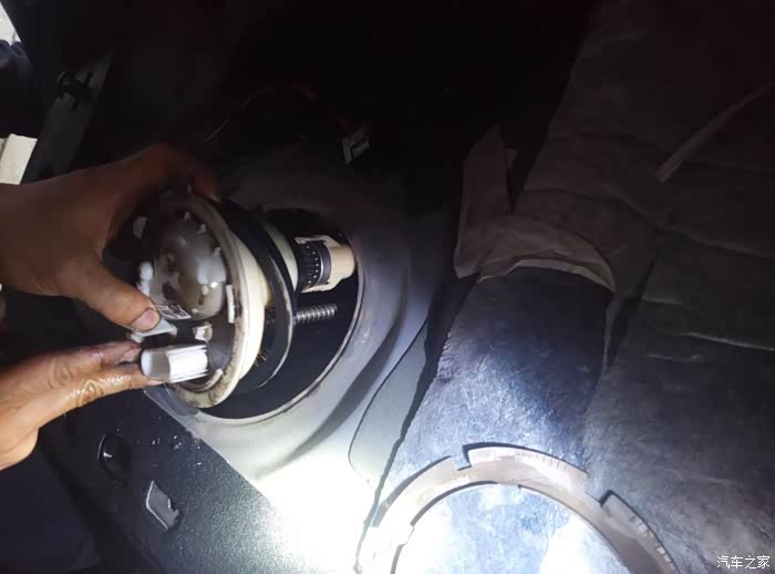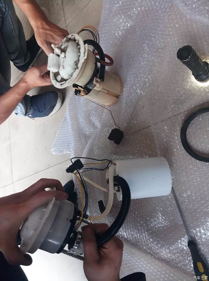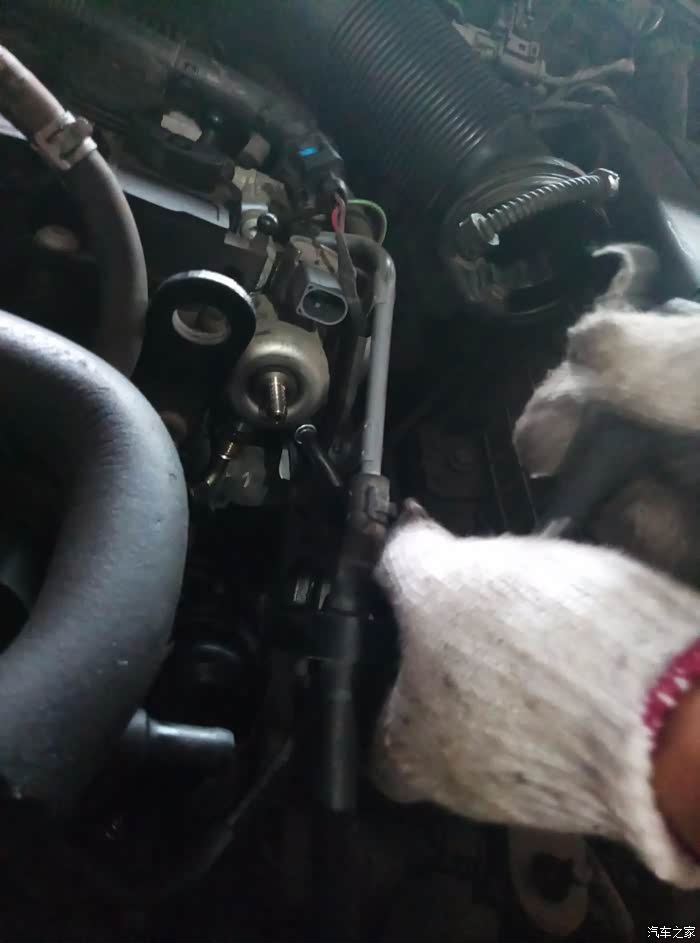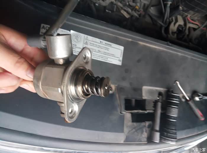挂上压力药水,车辆启动后,明显感觉发动机平稳多了。那么这说明,燃油泵提供的初级油压是不够的。果断先更换油箱里的燃油泵。至于高压泵好不好,先放一边。换过燃油泵之后试车,再确认高压泵要不要换。