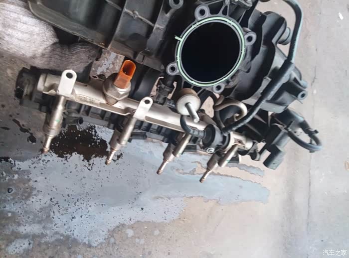 这个就是高压泵的安装底座,用手沾了点里面的机油,果然有汽油味。