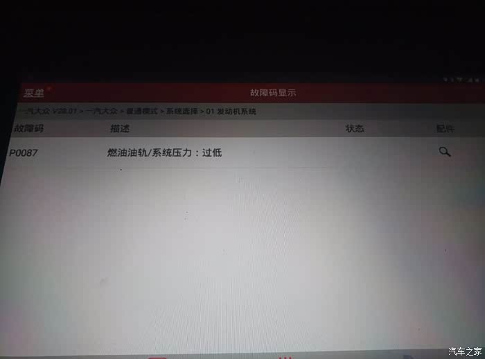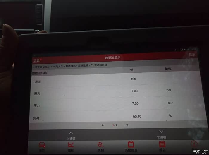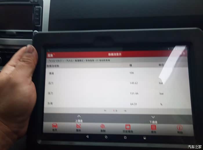 查看数据流,燃油压力4BAR,肯定是不够的。果然是油压引起的问题。