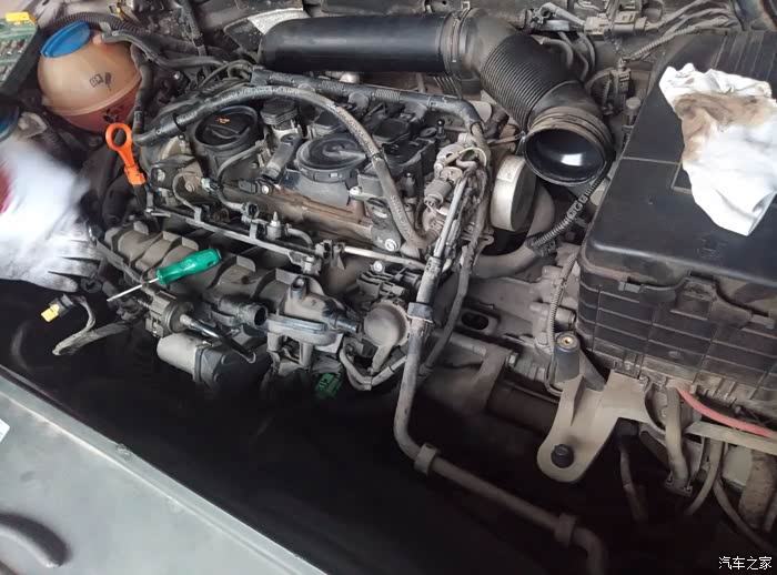 抽出来慢慢的都是油。这个没办法,EA888的分离器都这德行,分离不干净。这就是为什么气门积碳这么严重的原因,因为这些分离不干净的机油燃烧之后,就形成了胶质依附在进气门上,久而久之就成了积碳。