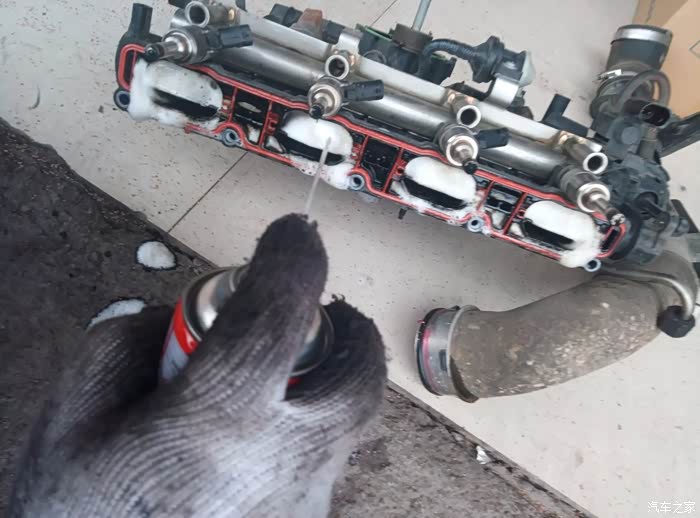 进气歧管也洗了,油漆是长短进气道翻版,上面积碳挺多的