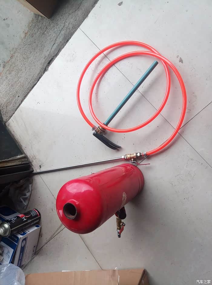 这个是自制喷砂器,很简单,灭火器罐子做的,大家也可以自己做一个,成本才一百多块钱