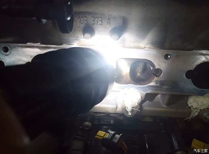 这个就是气门积碳了。虽然是大白天,但是进气座位置比较深,不打手电拍不到里面
