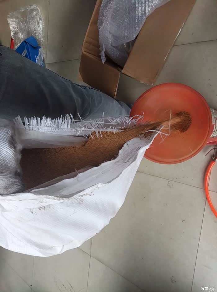 地上都是喷出来的核桃砂。当然了,这个就不重复利用了,哈哈。