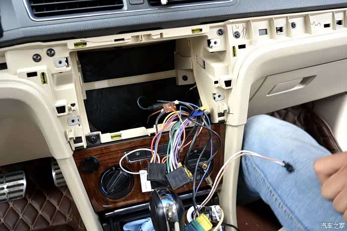 拆完后道剩下一个大窟窿,因为之前有安装过导航,而且这台飞歌GS2是专车专用,故而安装特别简单,找到相应的接口对插就行了。