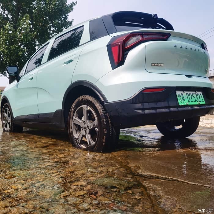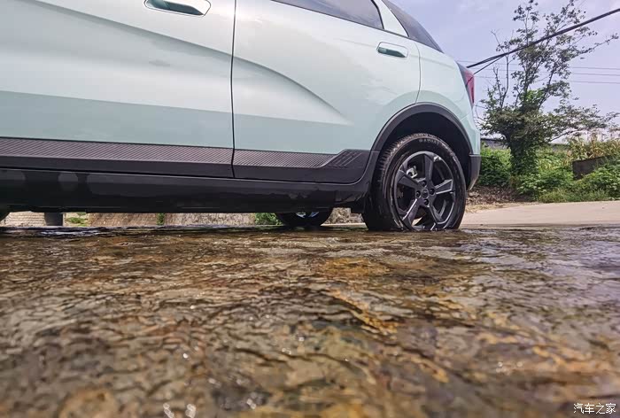 前几天路过一个坑洼积水路段,测试了一下乖巧虎的涉水情况。