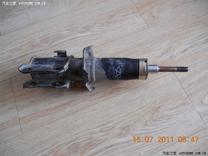 我的车是2000年12月买的,用的不多到现在才跑了1W 公里,和大家一样也被减震异响所困扰。由于只是响,不影响行驶也就没在意。前几天到4S店做保养,修理工说右边的轮胎咣,紧了轴承也没见效。最后发现是减震有间隙,要换掉,还可以解决异响问题。询问得知减震只保一年,要自费,想来想去只先换右边的吧。可是换了以后还是有异响啊,这钱算白花了!不说了上图片,由于是后补的所以少了点,大家见谅!