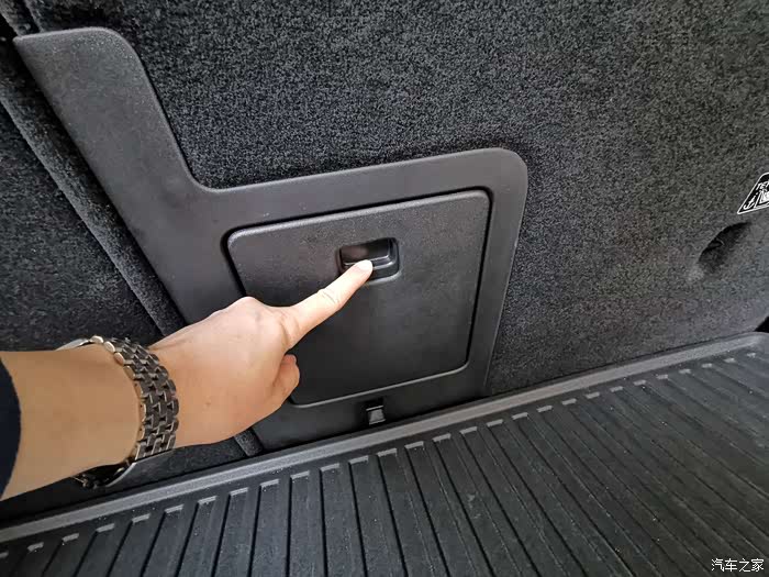 通向后备箱的孔在这打开,需要按下这个按钮。