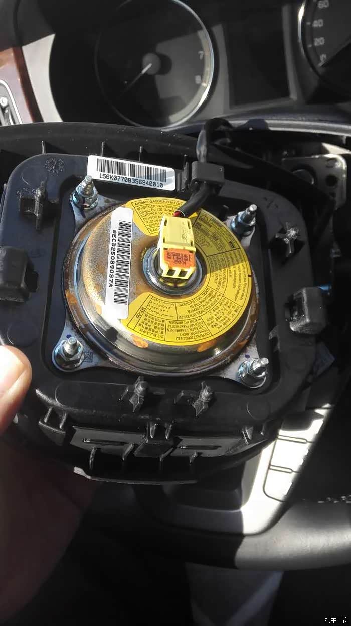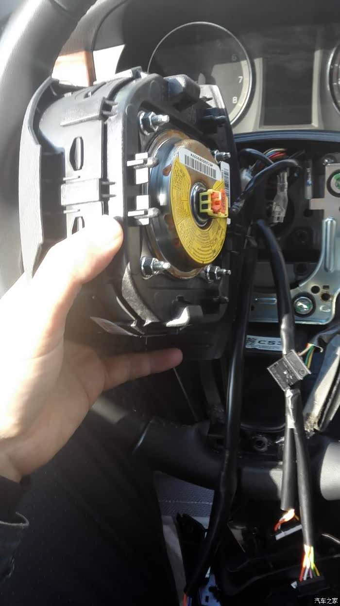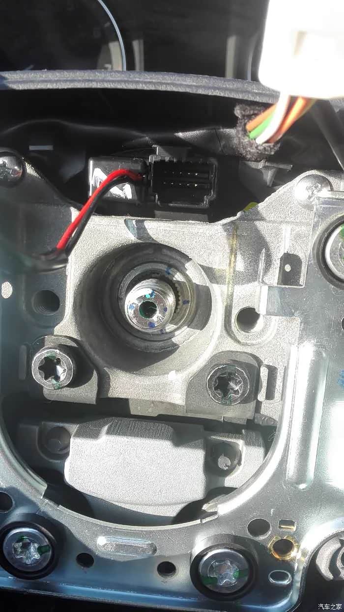 拆气囊(喇叭)过程就不拍照了,就是用米子螺丝刀在方向盘左右两个丝拧下,气囊就拿下来了