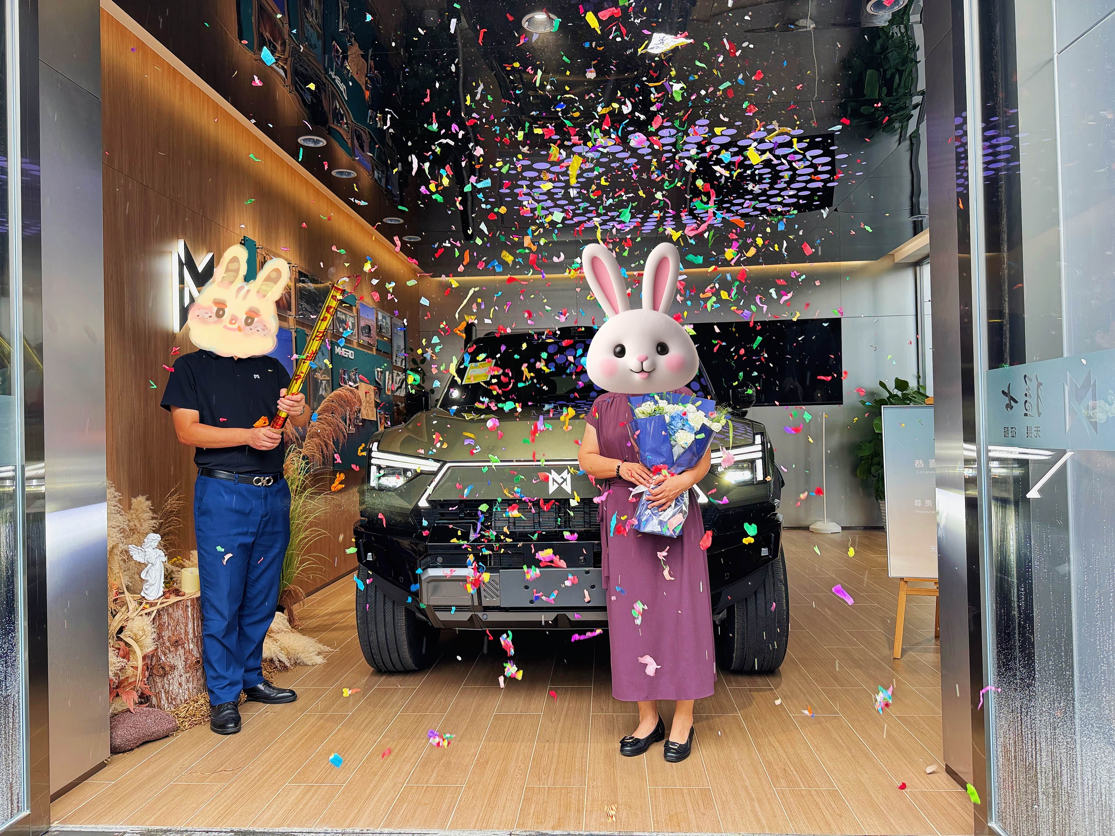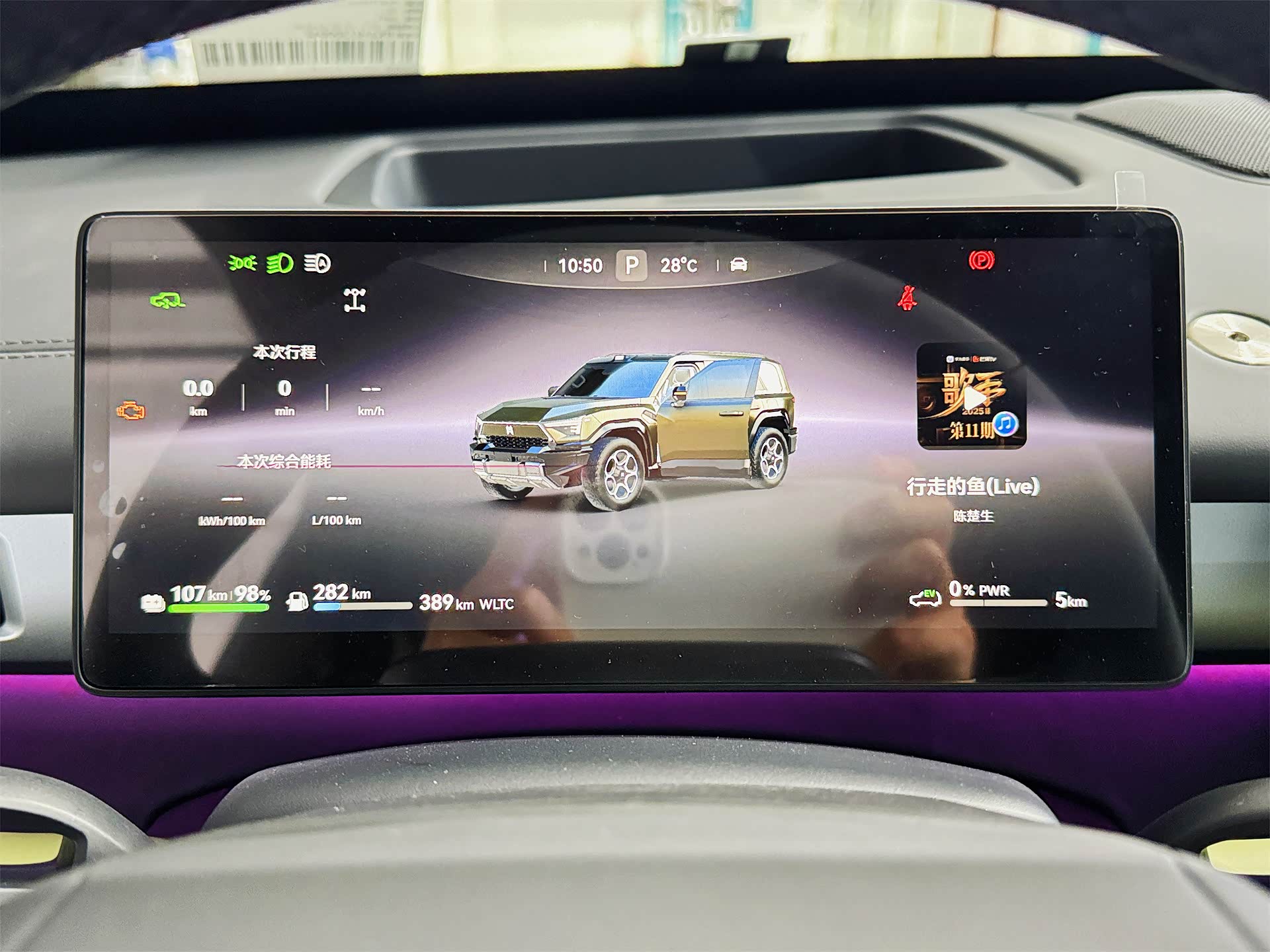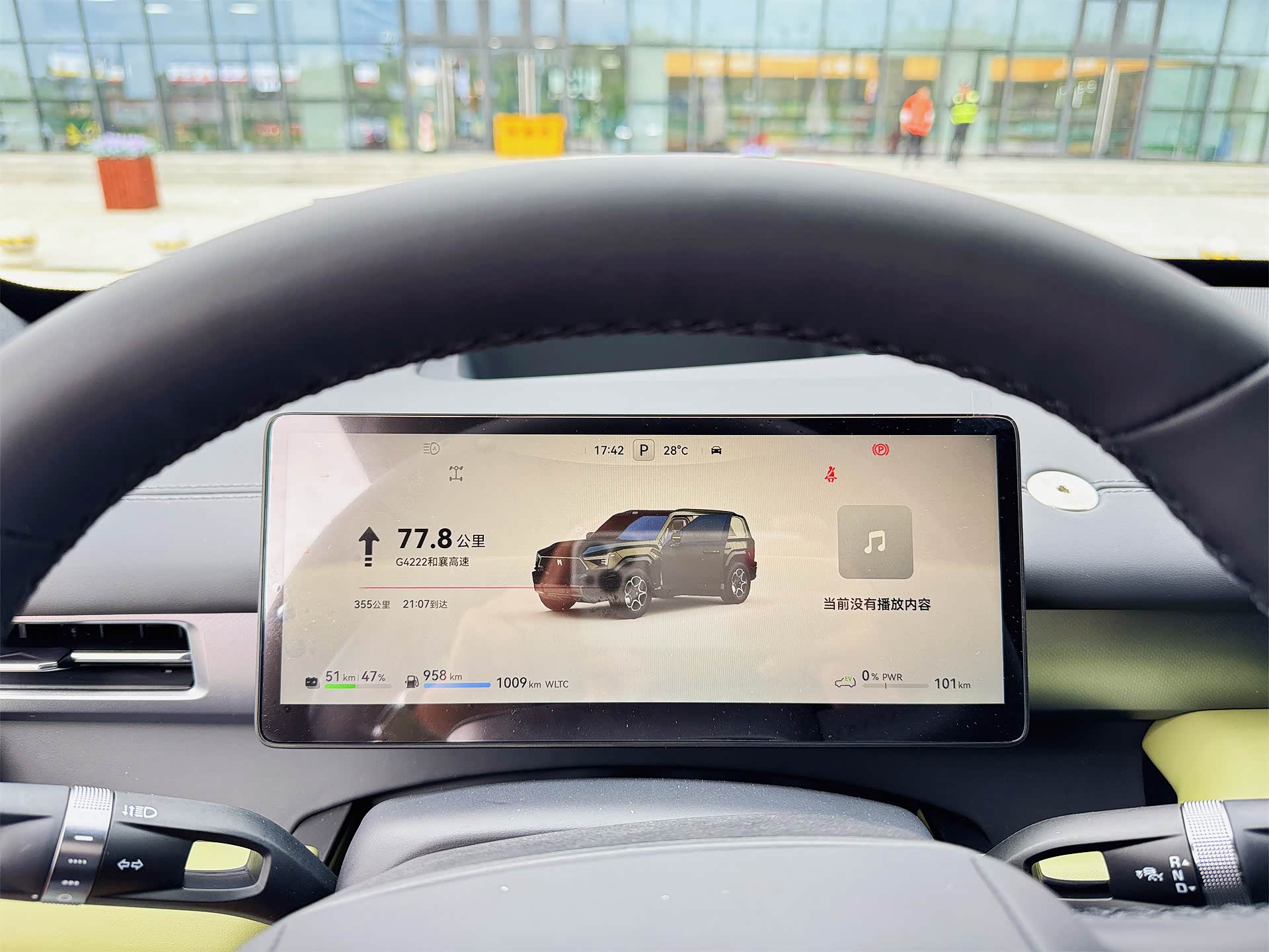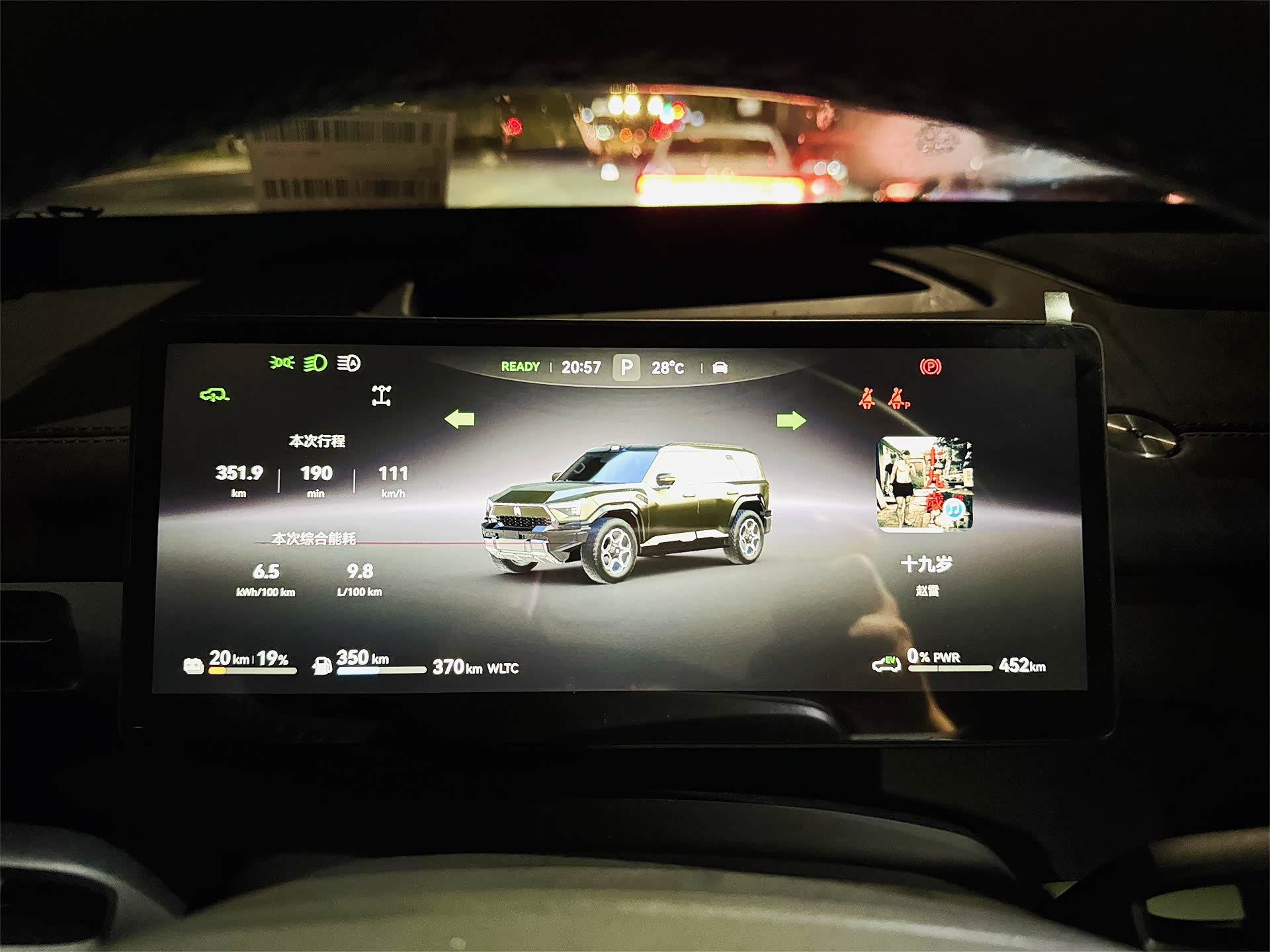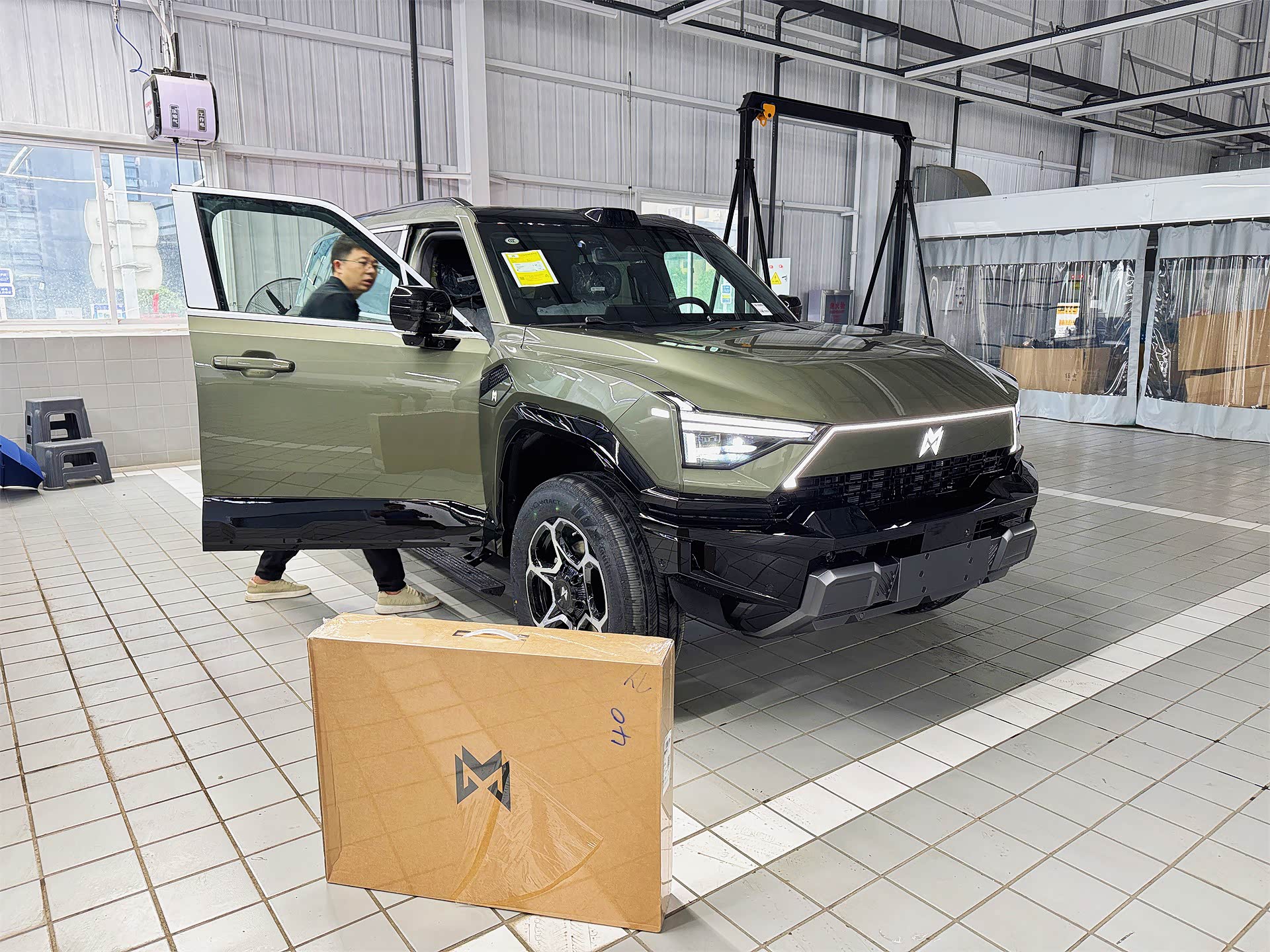 虽然没有满油,但好在基本算是满电交付,公里数显示5公里,崭新崭新的猛士M817。