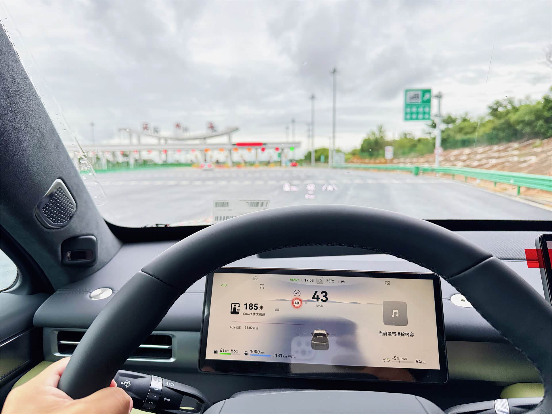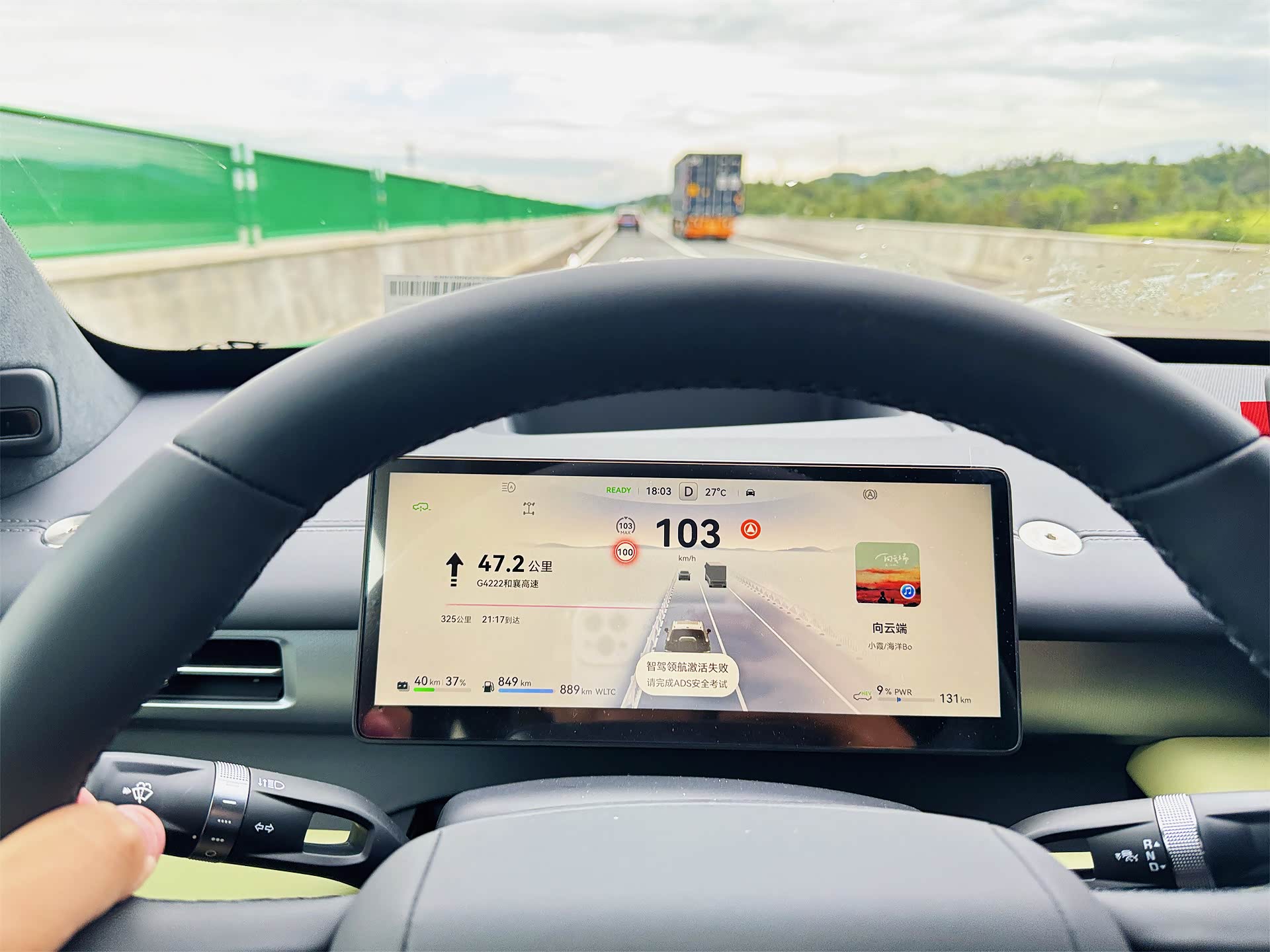 继续出发,后来才知道新车到手后,需要先跑100公里高快路才能在app里学习智驾相关的视频,考试通过后才能使用高速智能驾驶辅助功能,想用城市智驾辅助需要继续开100公里或等待14天后才能正常使用。