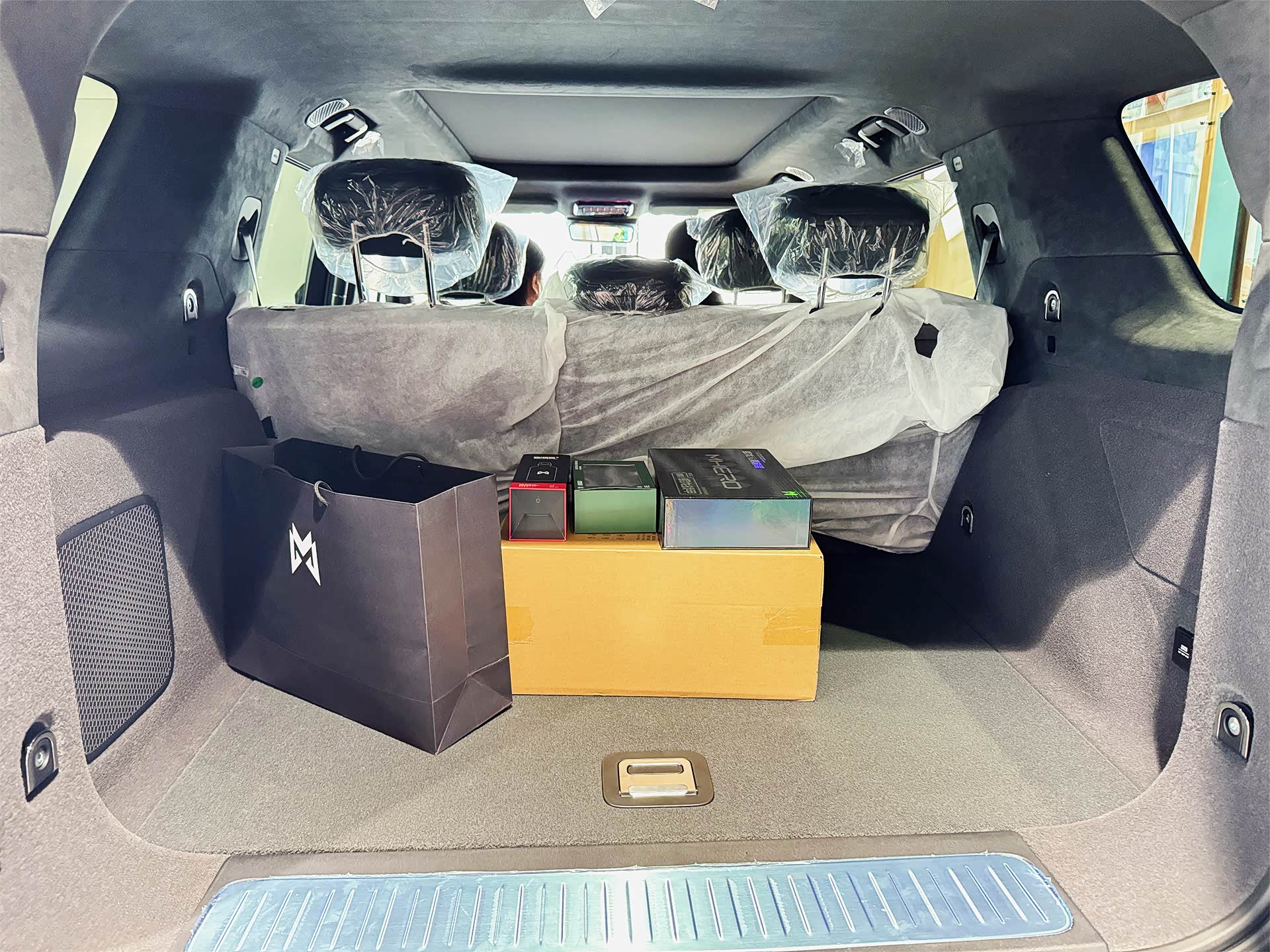 宽敞的后备箱空间,看到的都是送的,十分感谢胡姐姐和老大赠送的猛士周边礼品。金牛座的抠神表示心满意足,继续美滋滋!礼品都是猛士定制的,有保温杯、战术饭盒、蛟龙手办、双肩背包等等,app里搜了下还挺贵。