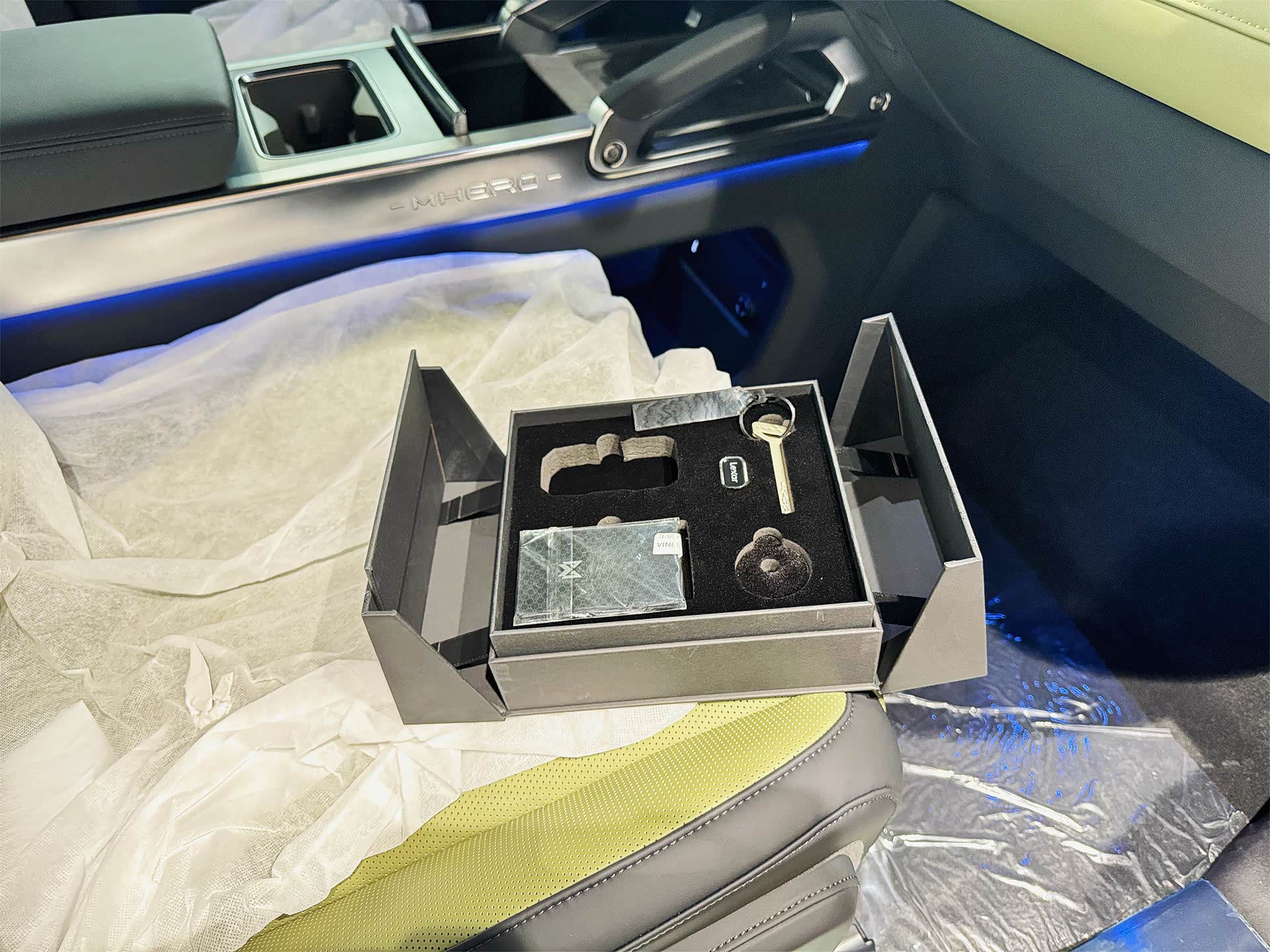 钥匙礼盒挺好的,左上角空位是星闪模型钥匙,中间椭圆是优盘,右边是机械钥匙(小书包版还能打开书包门),左下是卡片钥匙,右下角是车主徽章。目前星闪钥匙和徽章后续补发,暂时没货?
