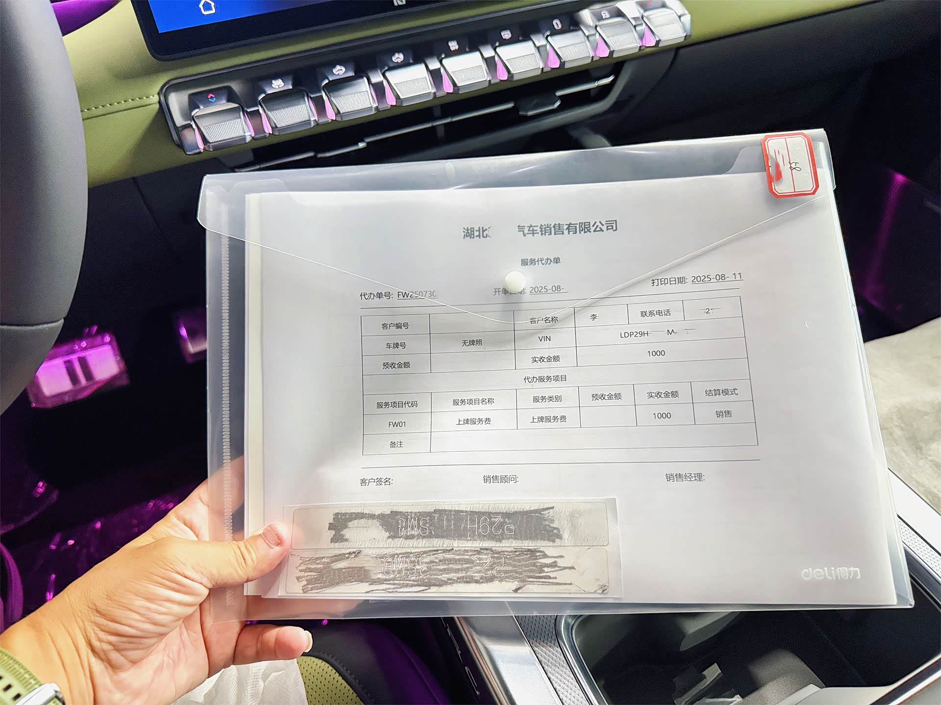 官方app里一通操作猛如虎,一看总价心里苦,心里真苦!车价34.99w没优惠,小订1000抵5000,限时赠送电吸门、电动踏板、星闪钥匙等。选装了拖车方口及电源、备胎套装:选装后车价36w,保险0.73w,上牌代办0.1w(门店说板***去车管所入户)至此总支出36.83w。