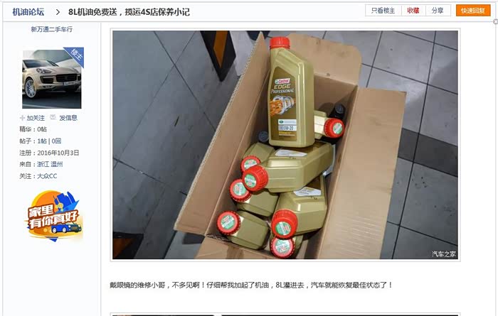再比如:论坛里充满了嘉实多极护的机油图片。