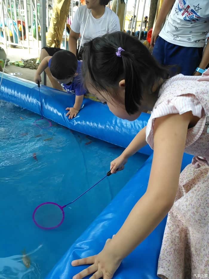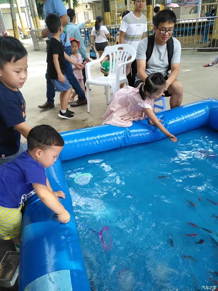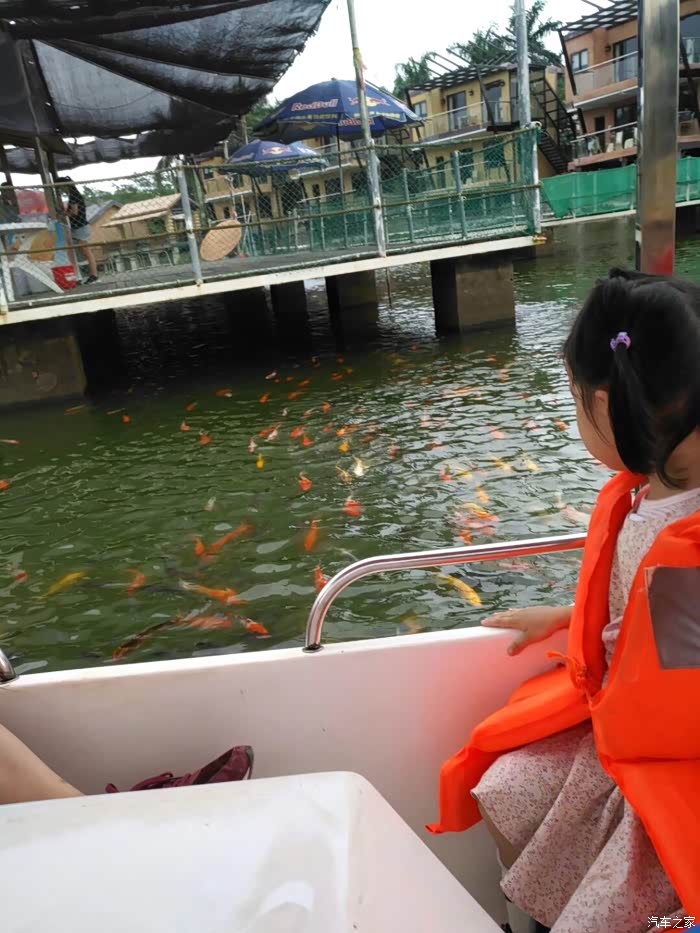 近距离看到这么多金鱼,小不点高兴极了,可以不能喂食