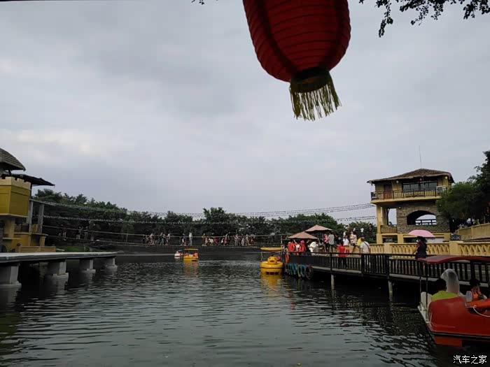 里面还有精巧的游船、各式各样的小朋友游乐场、各式动物观赏长廊、观看大型演出的场所,更有令人有惊无险开心无比仿泸定桥制造的荡桥…