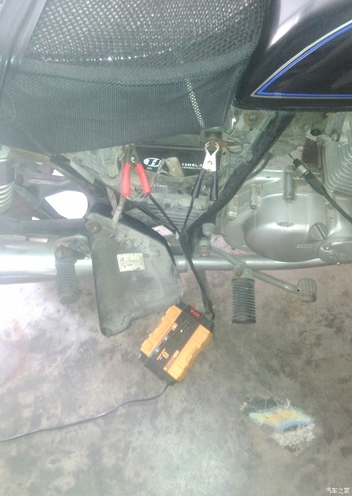 给汽车买的电池充电器,平时客串给摩托车电瓶保养,由于火花塞故障,打到电瓶没电了都不能启动,先充电
