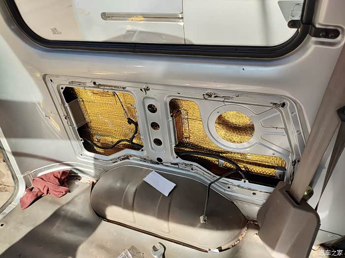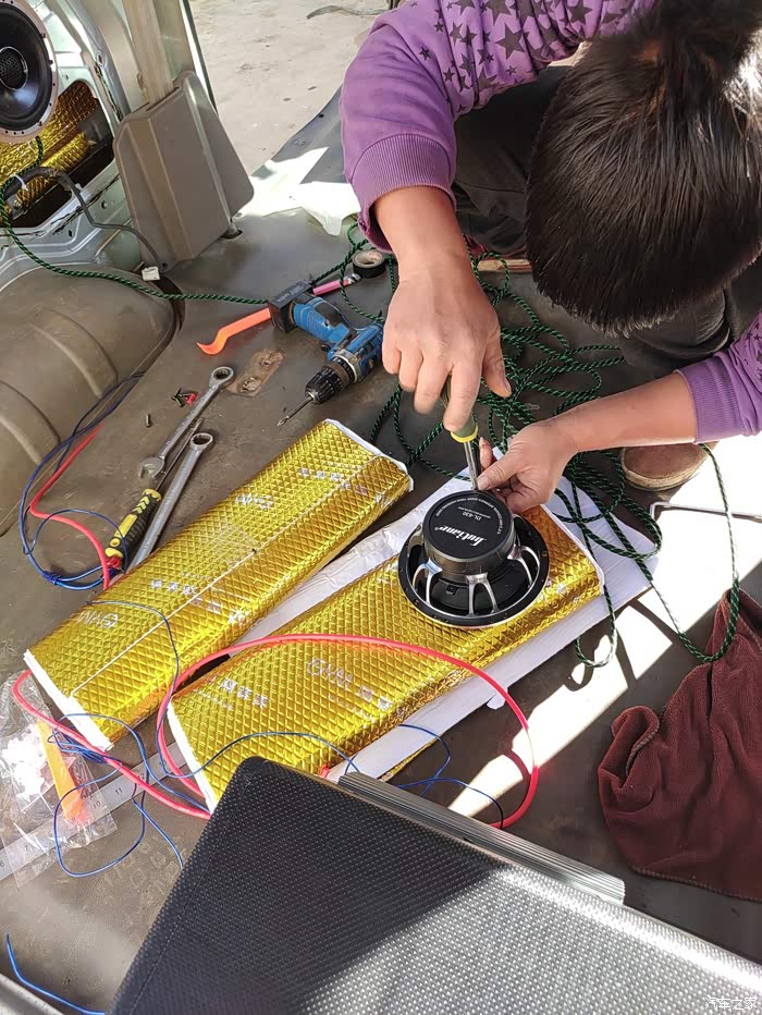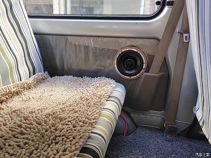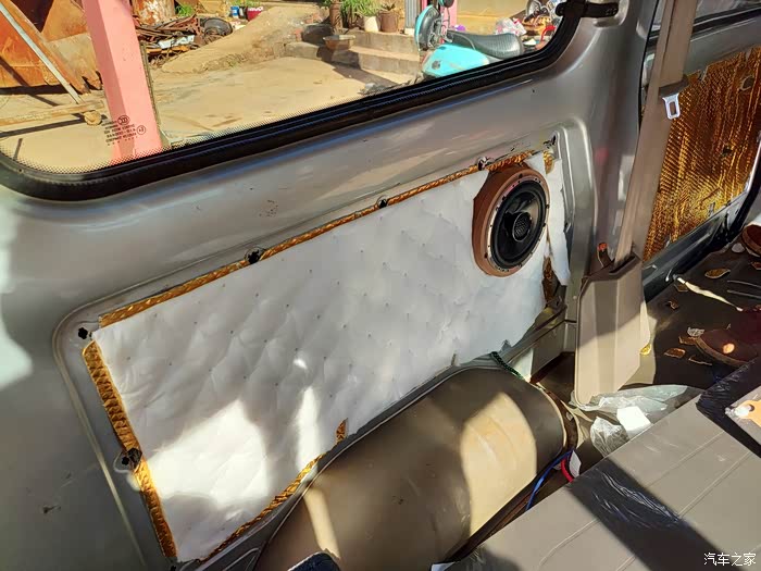 最后说说隔音和音响,隔音做了3层,止震板是非常的沉,贴完整扇门都变得厚重,用手指敲只有沉重的声音,关门声也变得沉重。车子静止状态下,播放音乐外面一点也不吵,隔音效果还是很不错的,最满意的地方就是音乐音量调大没有一丝共振,让喇叭发挥出最佳的效果。由于车厢地板没有做隔音所以行驶时候还是有发动机变速箱的噪音。