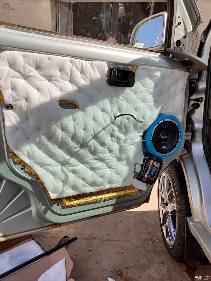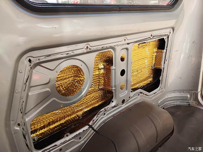 ,我只想说我自己开着舒心就好!最后说说隔音和音响,隔音做了3层,止震板是非常的沉,贴完整扇门都变得厚重,用手指敲只有沉重的声音,关门声也变得沉重。车子静止状态下,播放音乐外面一点也不吵,隔音效果还是很不错的,最满意的地方就是音乐音量调大没有一丝共振,让喇叭发挥出最佳的效果。由于车厢地板没有做隔音所以行驶时候还是有发动机变速箱的噪音。