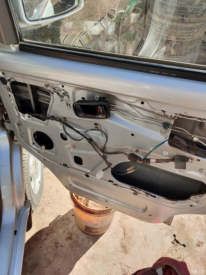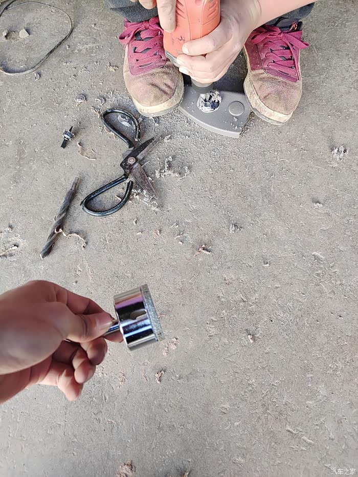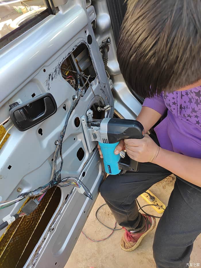 原车前门是4寸喇叭,现在要装6.5的喇叭,门板需要挖孔,设备也是不趁手,借了一台曲线锯勉强搞出来。