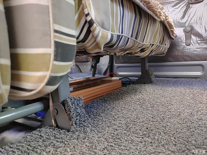 10寸的有源低音炮,按着空间尺寸选的,刚刚够放。回头焊两个地板扣,用橡胶带固定好,面包车尾部是最颠的地方,不固定好过减速带低音炮都能给你颠飞。