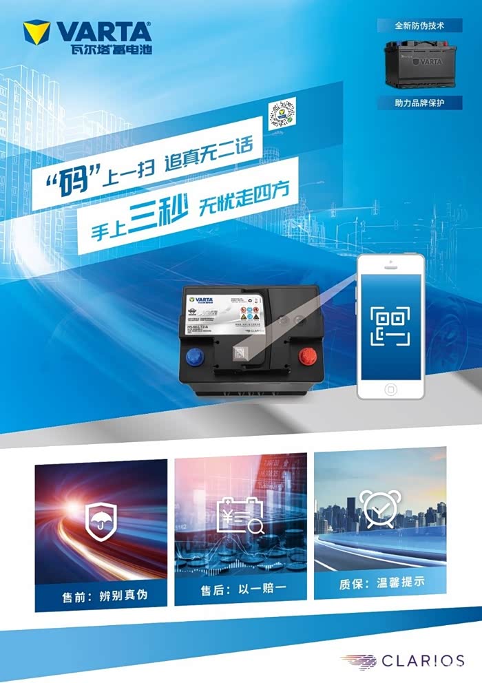 数字化时代,为渠道合作伙伴和消费者带来更好的客户体验和售后保障,是瓦尔塔持续发展的基石。瓦尔塔推出“一物一码电子质保”项目,自2020年6月1号起,瓦尔塔质保体系全面“电子化”升级,消费者购买任意瓦尔塔蓄电池产品,即可获得自购买日起相应期限的“电子”质保卡,并在质保期内,享受以一赔一的售后服务以及温馨质保提示。